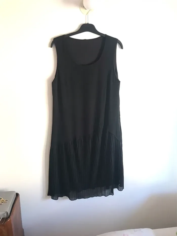 Petite robe noire fluide et légère sans manches taille 40/42. Le bas est plissé. #robe #robefemme #robefemmenoire #robefemmenoire4042 #robefluide #robefluidefemme #robefluidefemme4042 #robejupeplissée #robejupeplissée4042