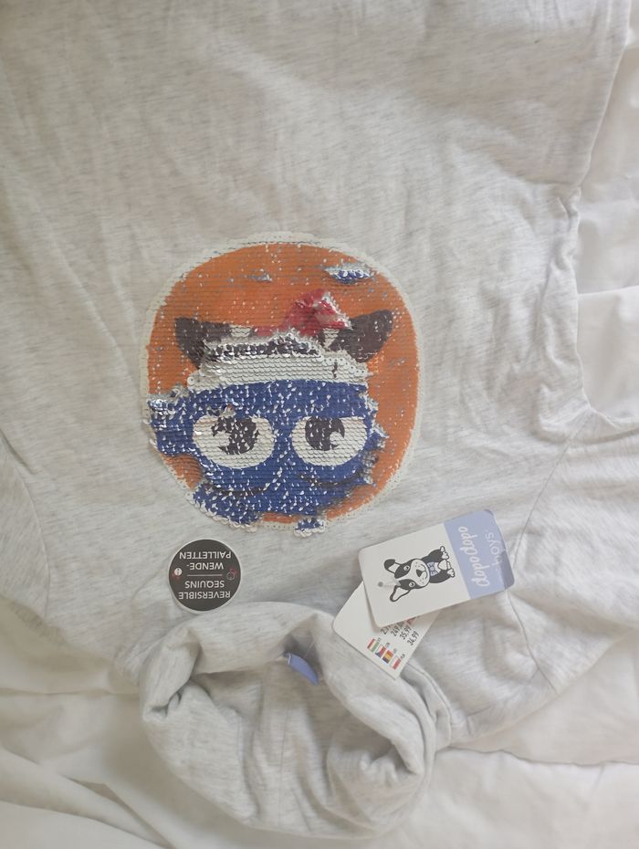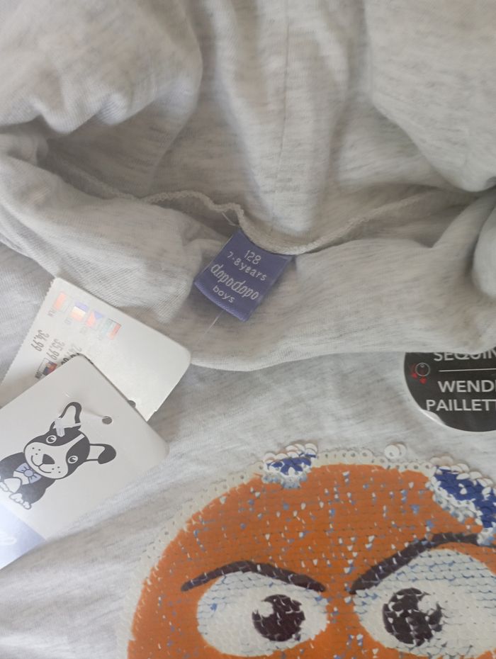 Tee shirt gris manches longues à sequins réversibles Dopodopo 128 cm neuf 5€ - photo numéro 1