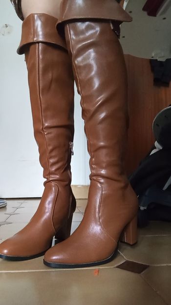 Cuissardes à talons en suédine beige taupe