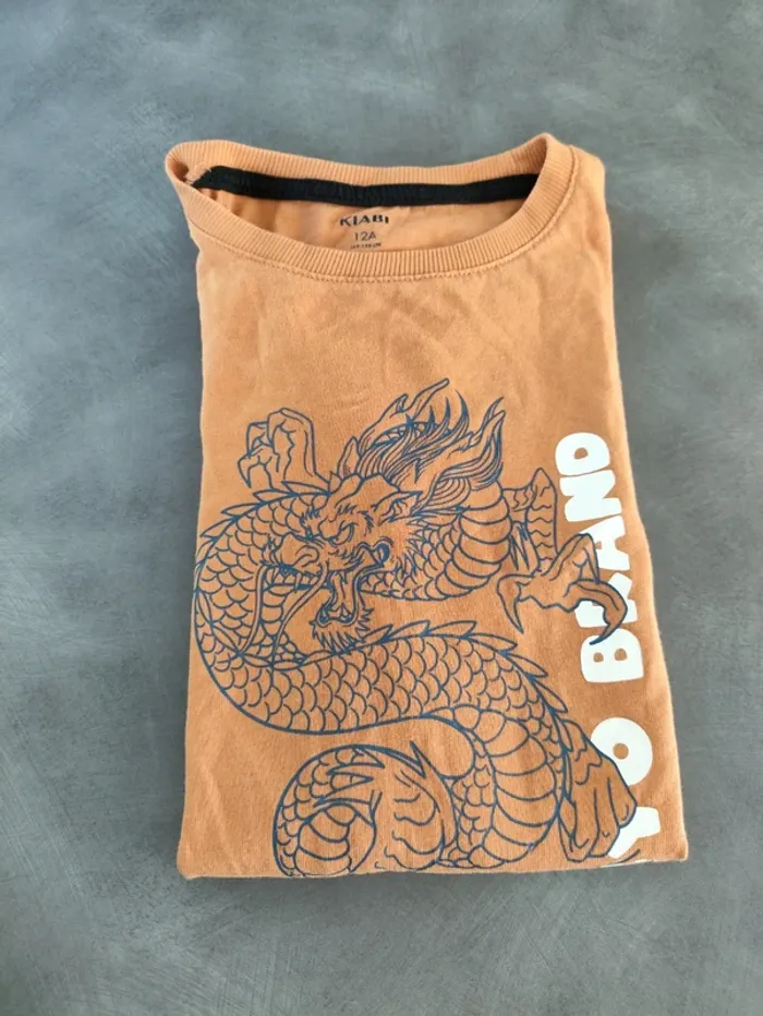 Bonjour, 🟡 T-shirt jaune moutarde Kiabi 12 ans T-shirt manches longues avec motif dragon 🐉 📏 Taille : 12 ans 🧵 100 % coton ✨ État : très bon état 💰 Prix : 3 € 📦 Possibilité de créer un lot, plusieurs articles en 12 ans disponibles dans mon dressing ! N’hésitez pas à aller voir mes autres annonces 😉 Bonne journée ☀️
