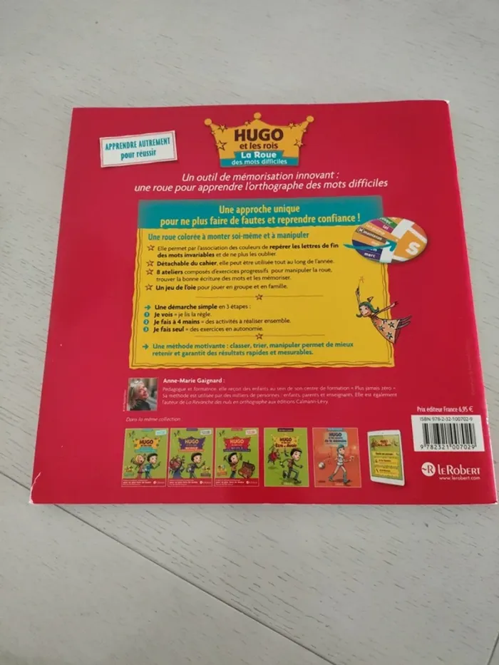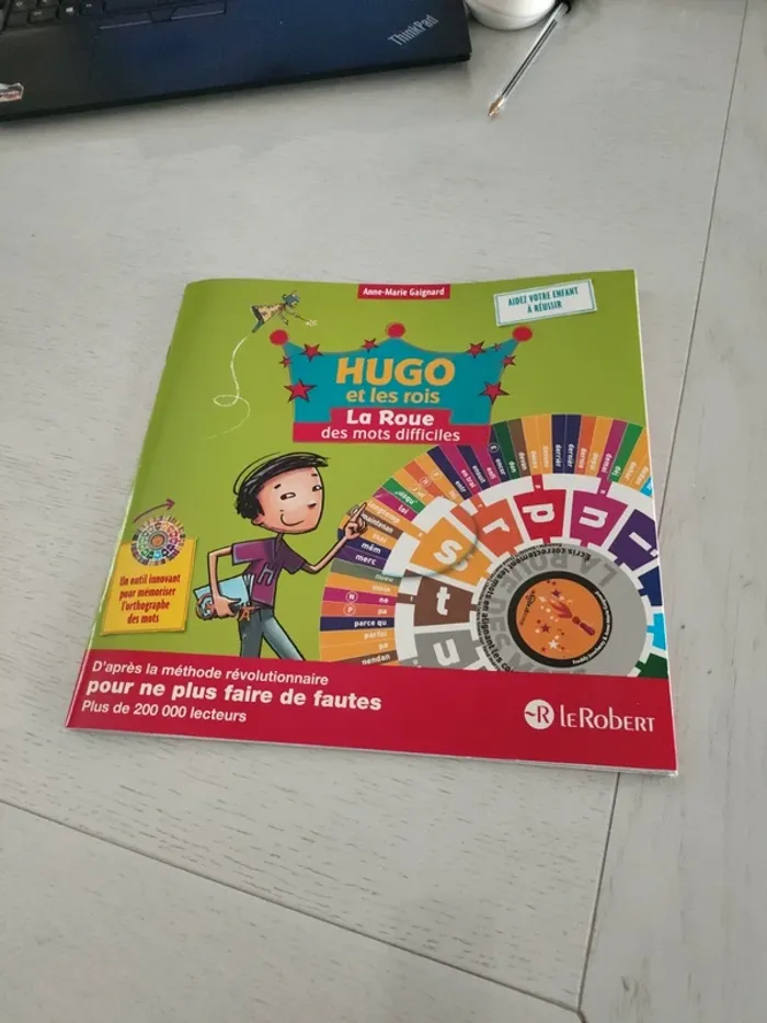 Bonjour, 📘 À vendre : Cahier "Hugo et les rois – La roue des mots difficiles" État : Très bon état général petite déchirure voir photo mais rien de méchant Auteur : Anne-Marie Gaignard Éditeur : Le Robert Collection : Hugo et les rois Format : Cahier d’exercices – Broché Public cible : Enfants à partir de 8 ans (primaire & début collège) Thème : Orthographe, vocabulaire, mémorisation ludique des mots difficiles 🎯 Description : Un cahier pédagogique et ludique pour aider les enfants à maîtriser l’orthographe des mots difficiles grâce à la fameuse méthode d’Anne-Marie Gaignard. Avec des jeux, des dictées, des astuces visuelles et surtout la roue des mots pour apprendre efficacement et durablement. Parfait pour renforcer la confiance en soi en orthographe et progresser sans stress ! 💰 Prix : 4 € 📍 Remise en main propre possible sur le secteur de Bosc le hard 📩 Me contacter pour plus de détails ou photos ! Bonne journée