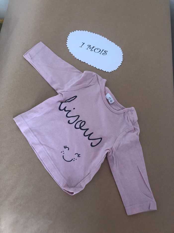 Haut manche longue en très bon état Taille : 1 mois Couleur rose pâle