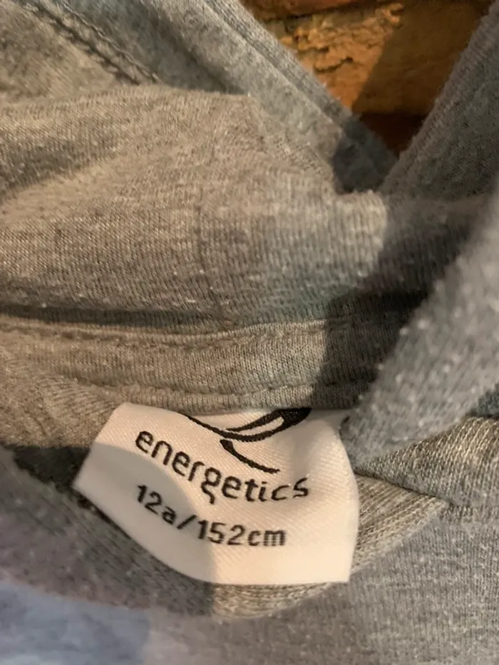 En bon état car bouloches Sweat à capuche gris chiné taille 12 ans coton et polyester Aucun trou ni tache Marque Energetics Intersport #maemayllisgarcon12
