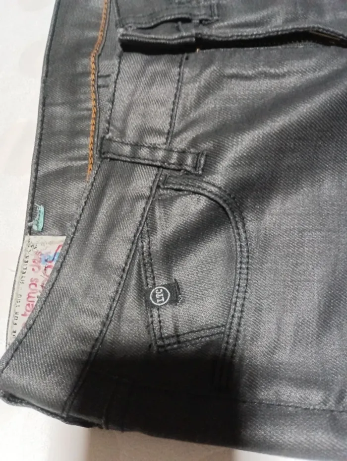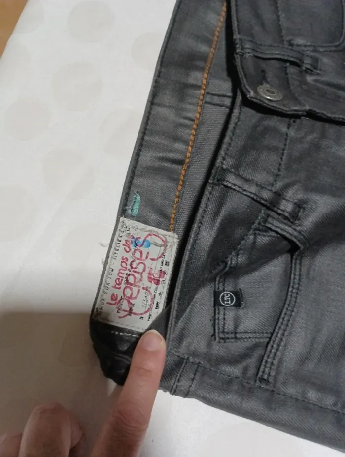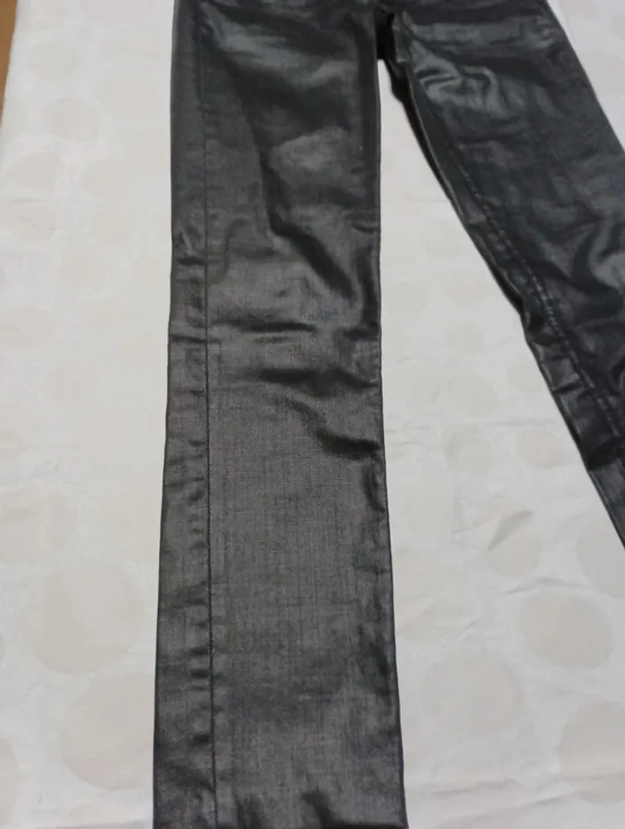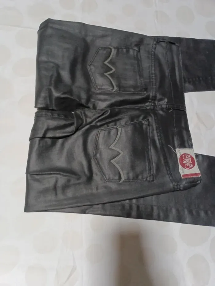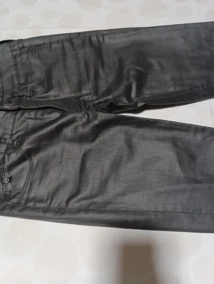 Pantalon jeans femme Le Temps des Cerises taille 36 coupe droite style simili cuir mais en jeans En très bon état