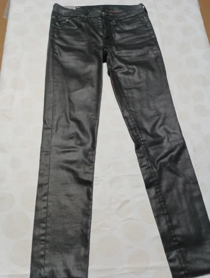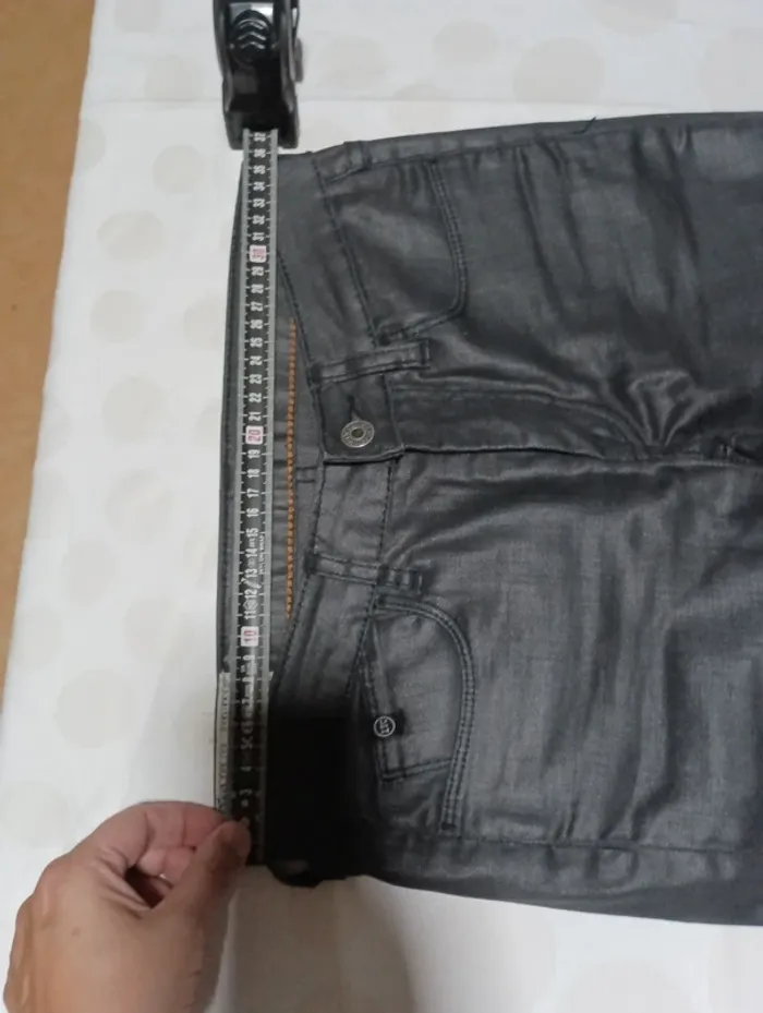 Pantalon jeans femme Le Temps des Cerises taille 36 coupe droite style simili cuir mais en jeans