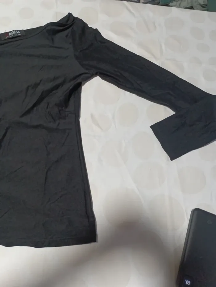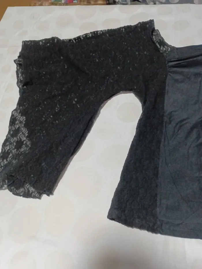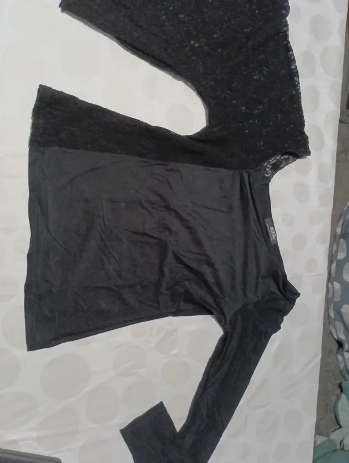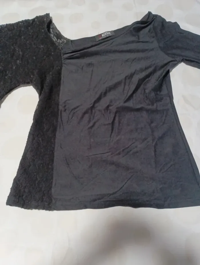 Tee shirt blouse femme bi matière dentelle asymétrique Morgan taille S En très bon état