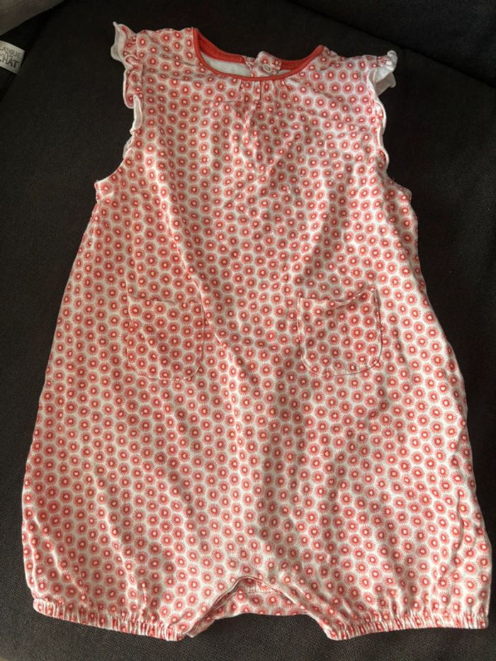 Combishort Soleil rouge 2 poches plates Pressions à l’entrejambe Pressions dans le dos Très bon état 18mois 80cm #ptite_fan_bebe #ptite_fan_bebe18mois