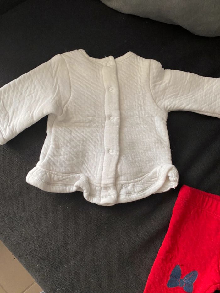 Ensemble matelassé en coton Haut blanc manches longues avec tête de Minnie entièrement boutonné à l’arrière Pantalon rouge avec noeud sur les genoux Elastique à la taille Disney baby - Orchestra Taille 1 mois (54 cm) #ptite_fan_bebe #disney #ptite_fan_bebe1mois