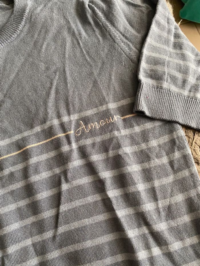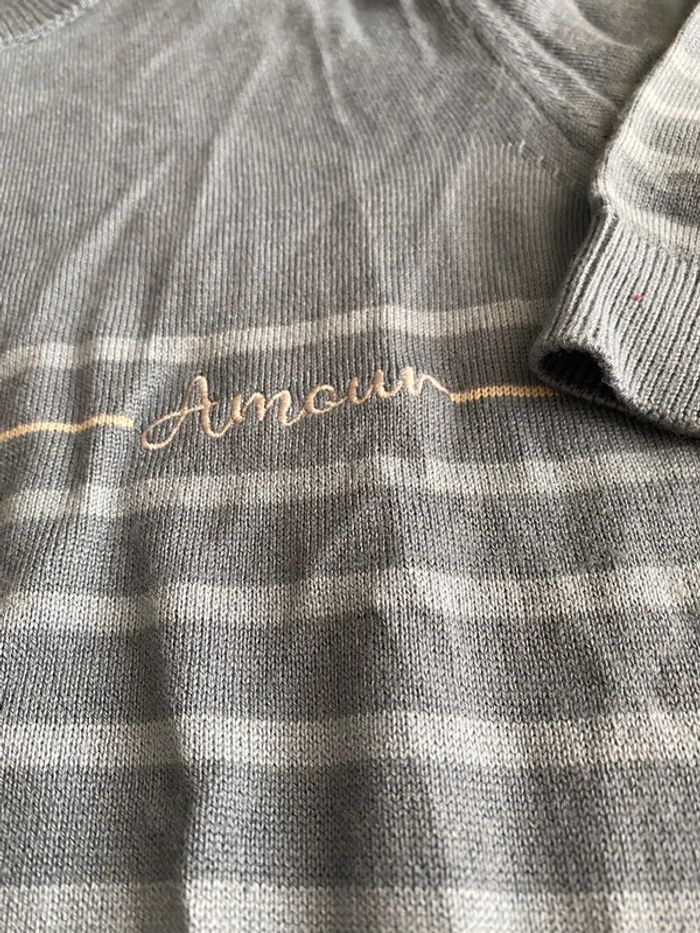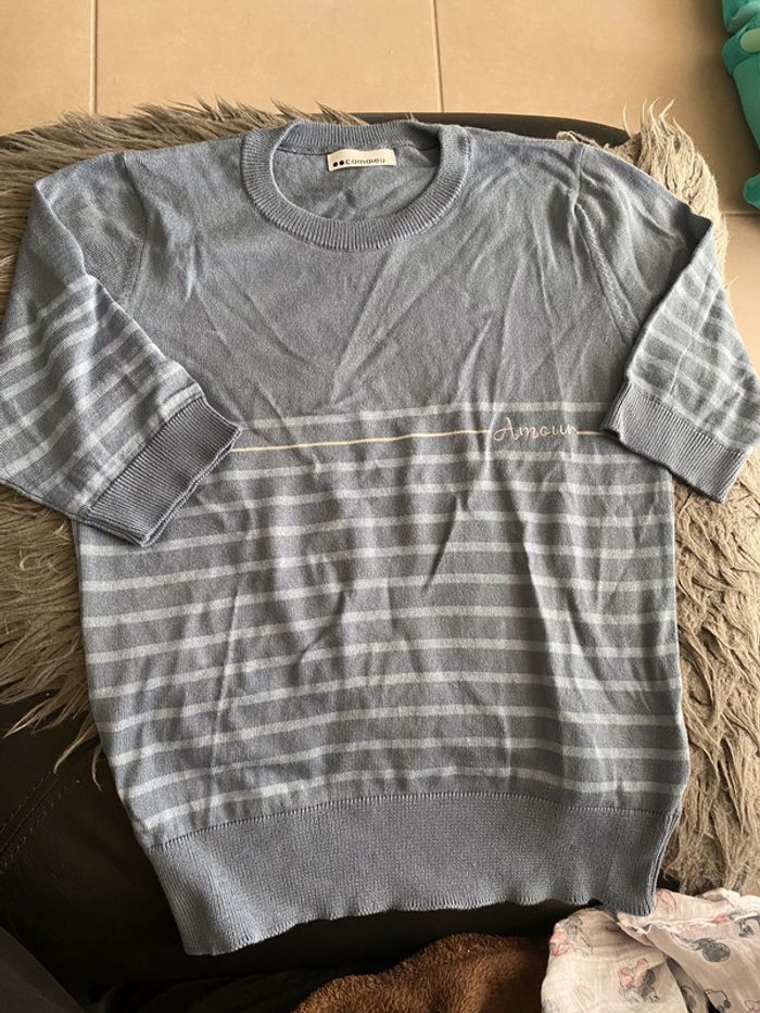 Pull fin à rayures Message « amour » sur la poitrine Manches au coude Couleur bleu roi Neuf sans étiquette Taille S #ptite_fan36