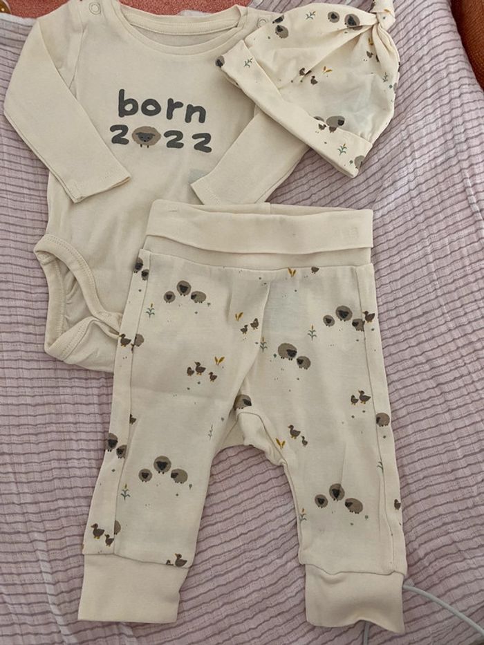ensemble : body manches longues + pantalon imprimé + bonnet mixte fille/garçon taille 1-2 mois (56cm) #ptite_fan_bebe #ptite_fan_bebe1mois