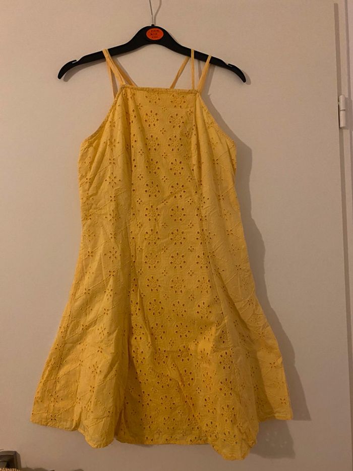 robe jaune entièrement doublée fermeture zip sur le côté. coupe haute sur le devant coupe arrondie en bas sur le devant et droite à l’arrière double bretelle : droite sur l’épaule et croisée dans le dos. #ptite_fan36
