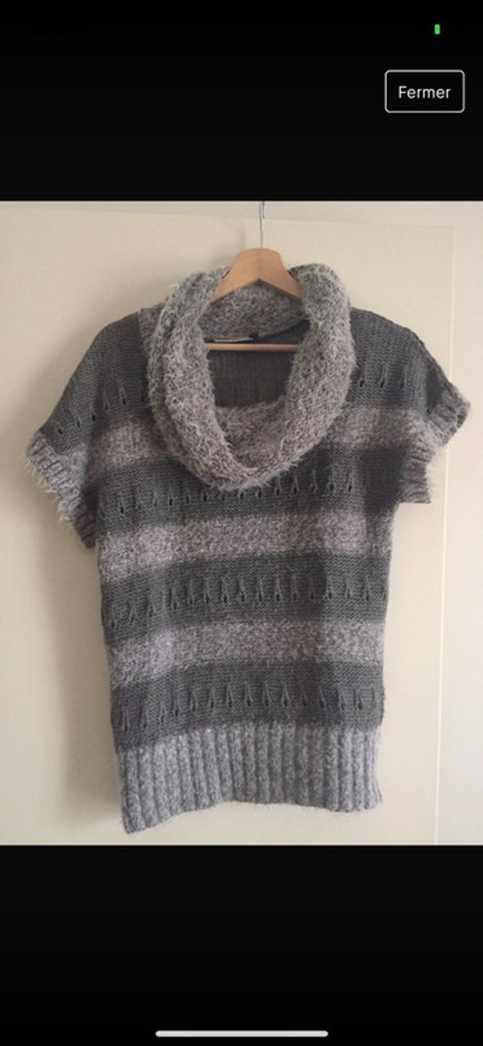peut être porté seul, sur un polo manches longues ou sur une chemise. col large, style écharpe. taille 34/36 couleurs : gris clair, gris anthracite #ptite_fan36 #ptite_fan34