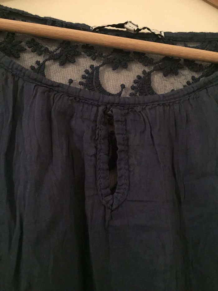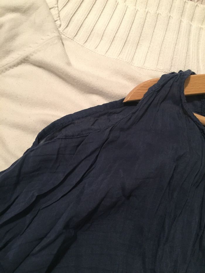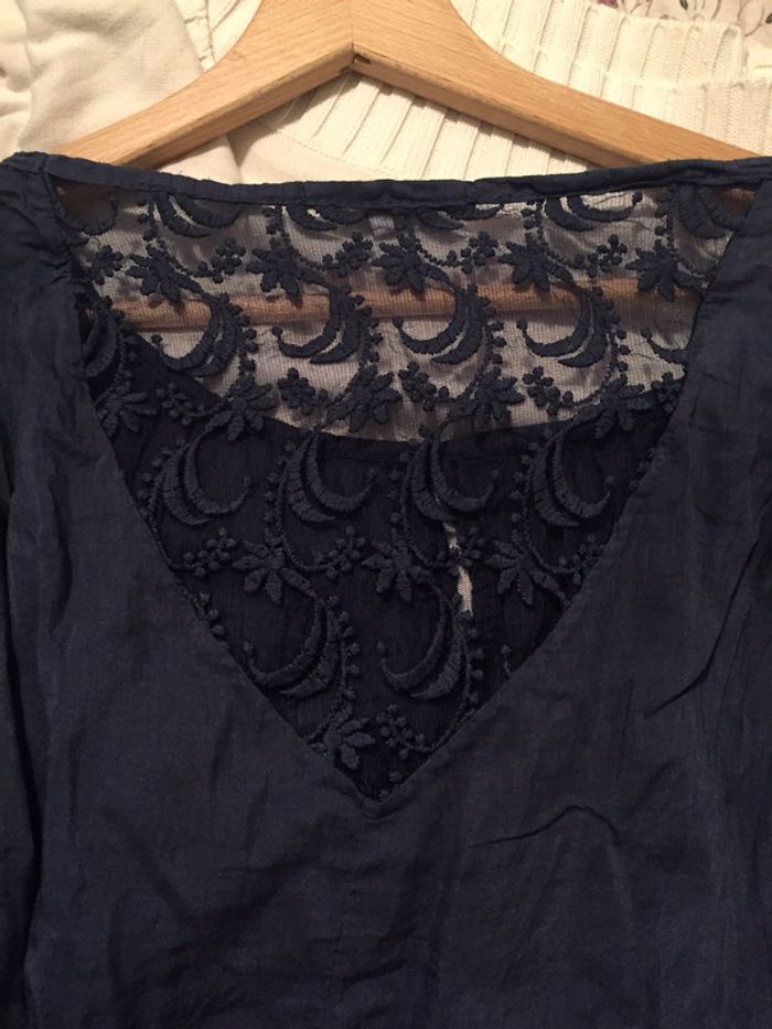 blouse bleu marine épaules dénudées manches 3/4 goutte d’eau à l’avant (voir photo) dentelle dans le haut du dos (voir photo) élastique à la taille #ptite_fan38