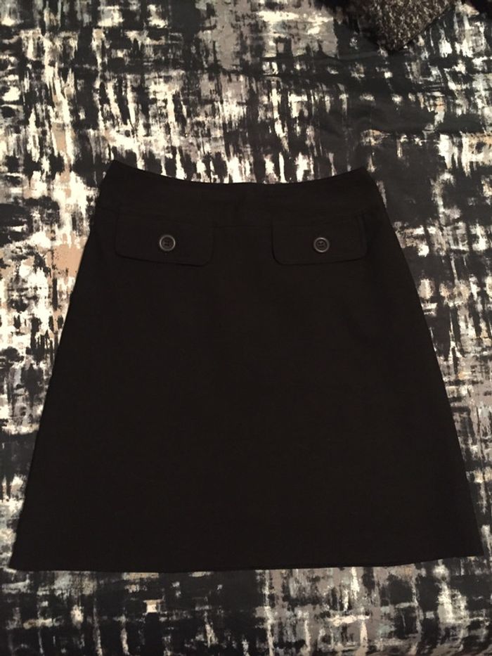 jupe noire taille haute deux fausses poches sur le devant fermeture par zip à l’arrière entièrement doublée longueur 46cm excellent état #ptite_fan36