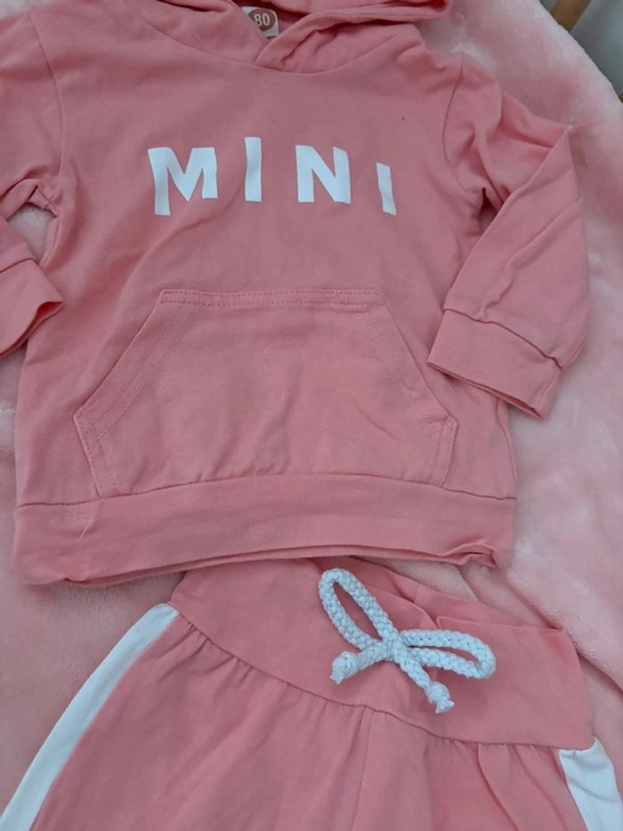 Ensemble jogging + t-shirt manches longues Capuche Faux lien de serrage à la taille Poche sur le ventre 80cm #ptite_fan_bebe #ptite_fan_bebe18mois