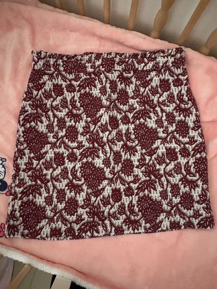 Jupe courte épaisse Fleurs bordeaux Neuve sans étiquette (jamais portée) Zip + bouton Taille 40 39cm de tour de taille 43,5cl de longueur