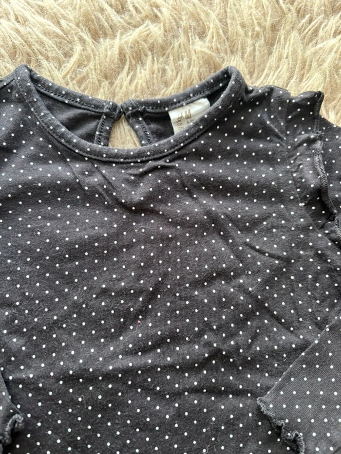 T-shirt manches longues Noir à pois blancs Très bon état Volants sur les épaules 74cm #ptite_fan_bebe #ptite_fan_bebe9mois #ptite_fan_bebe12mois