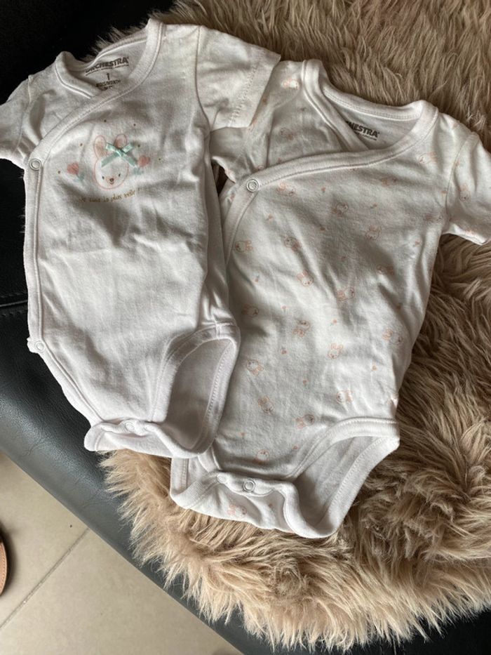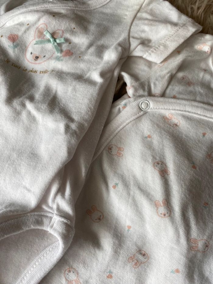 2 Bodies manches courtes Motif lapin Très bon état Entièrement boutonnés Taille 1mois (50cm) #ptite_fan_bebe #ptite_fan_bebe1mois