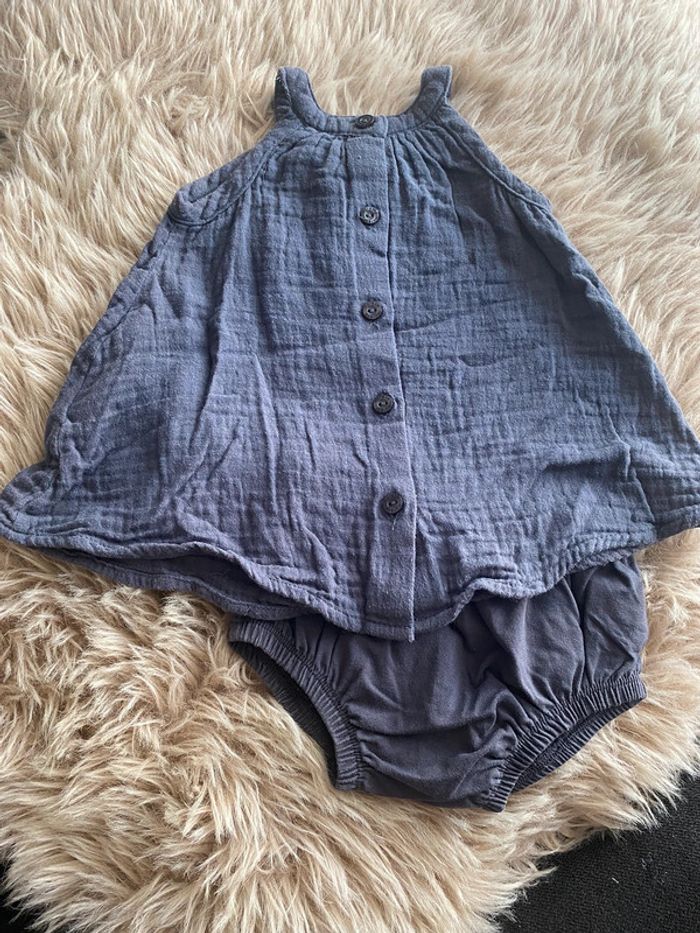 Robe en gaze de coton Broderie papillons Entièrement boutonnée dans le dos Vendue avec le bloomer en coton Taille 3mois (60cm) Très bon état #ptite_fan_bebe #ptite_fan_bebe3mois