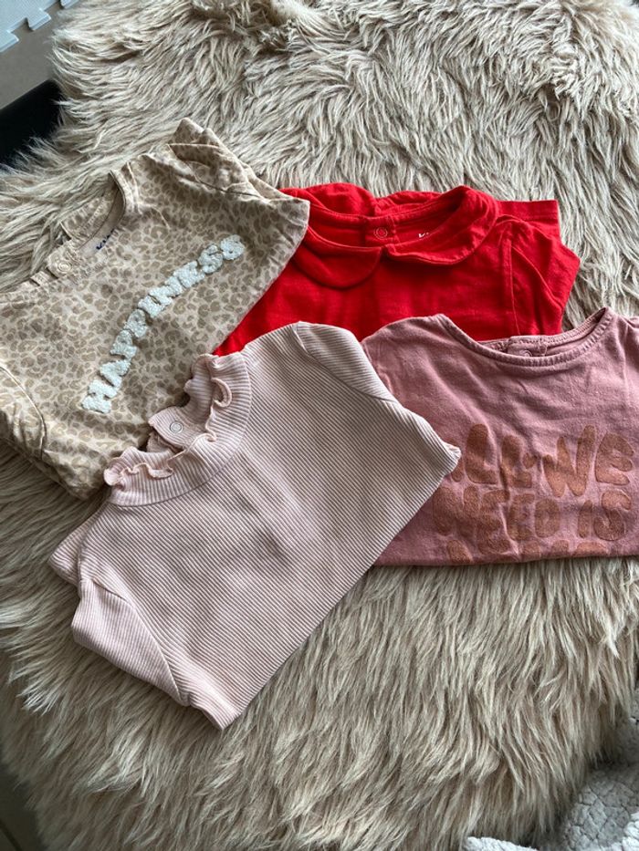 Lot de 4 tshirts manches longues Le léopard, le rouge et le brique s’ouvrent entièrement dans le dos par pressions Et le rose clair à le col montant et 3 pressions en haut du dos Très bon état Taille 6mois (67cm) #ptite_fan_bebe #ptite_fan_bebe6mois