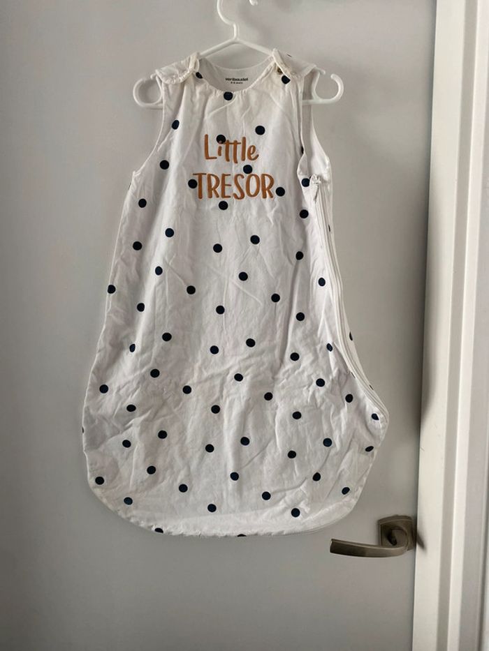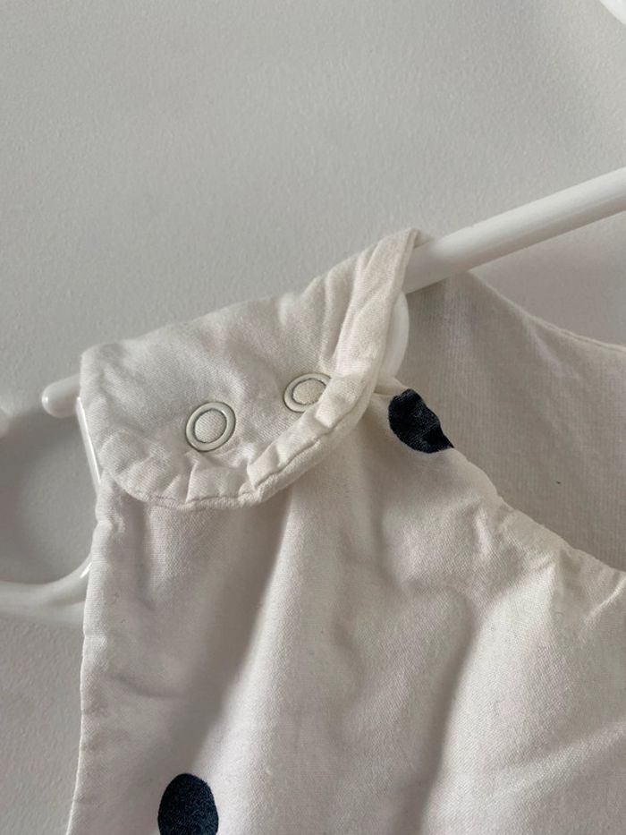 Gigoteuse blanche à pois noir Fine pour l’été Bon état (légèrement jauni sur les épaules-cf photos) Taille 0-6mois #ptite_fan_bebe #ptite_fan_bebe3mois #ptite_fan_bebe6mois