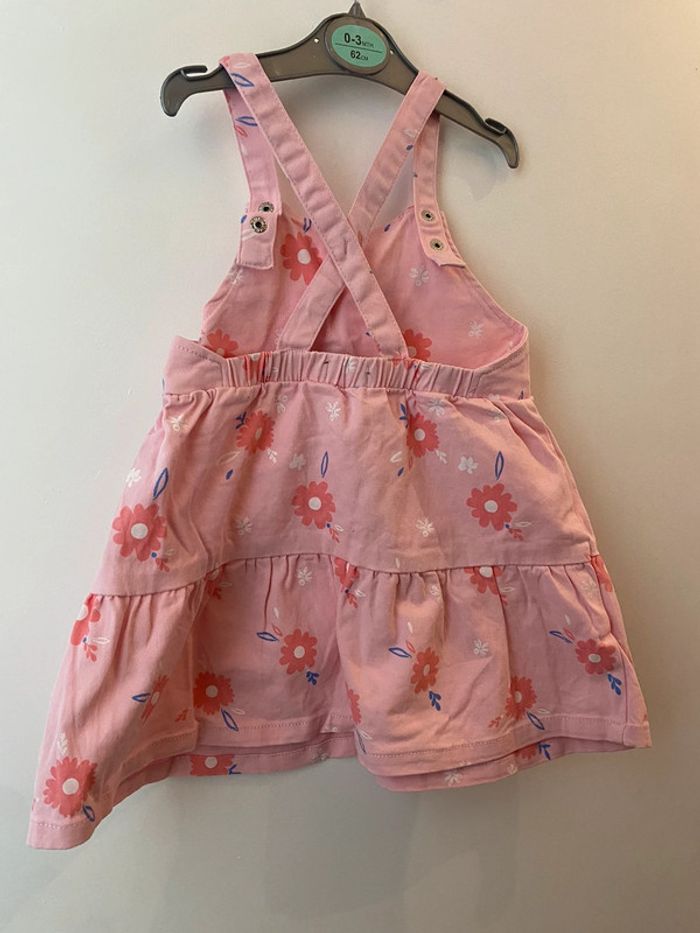 Robe salopette en jean Rose à fleurs Plusieurs hauteurs de pressions pour les bretelles Excellent état Taille 86cm #ptite_fan_bebe #ptite_fan_bebe24mois