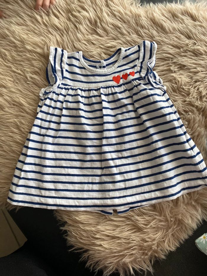 Robe marinière S’ouvre entièrement par pressions dans le dos 3 cœurs rouges sur la poitrine Parfait état Taille 3mois (60cm) #ptite_fan_bebe #ptite_fan_bebe3mois
