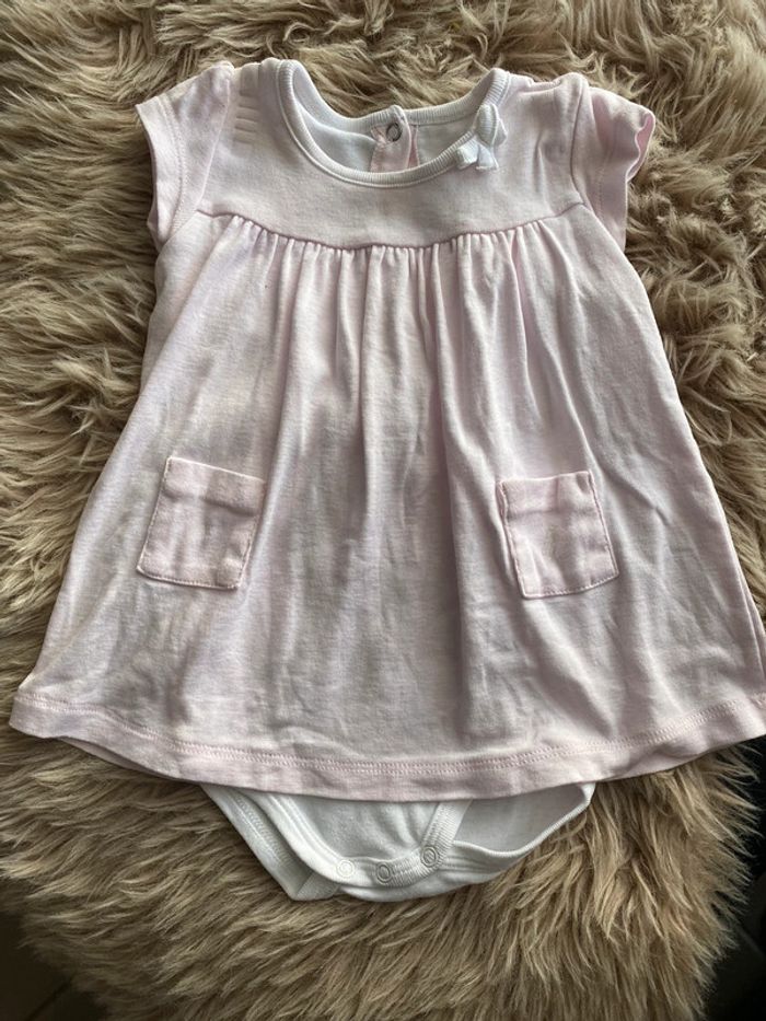Rose rose pale Noeud sur le col Pressions dans le dos Body blanc intégré Deux poches plates devant (une avec un bateau-Cf photo) Très bon état Taille 6mois (67cm) #ptite_fan_bebe #ptite_fan_bebe6mois
