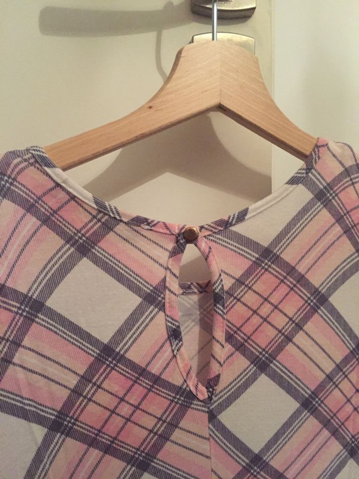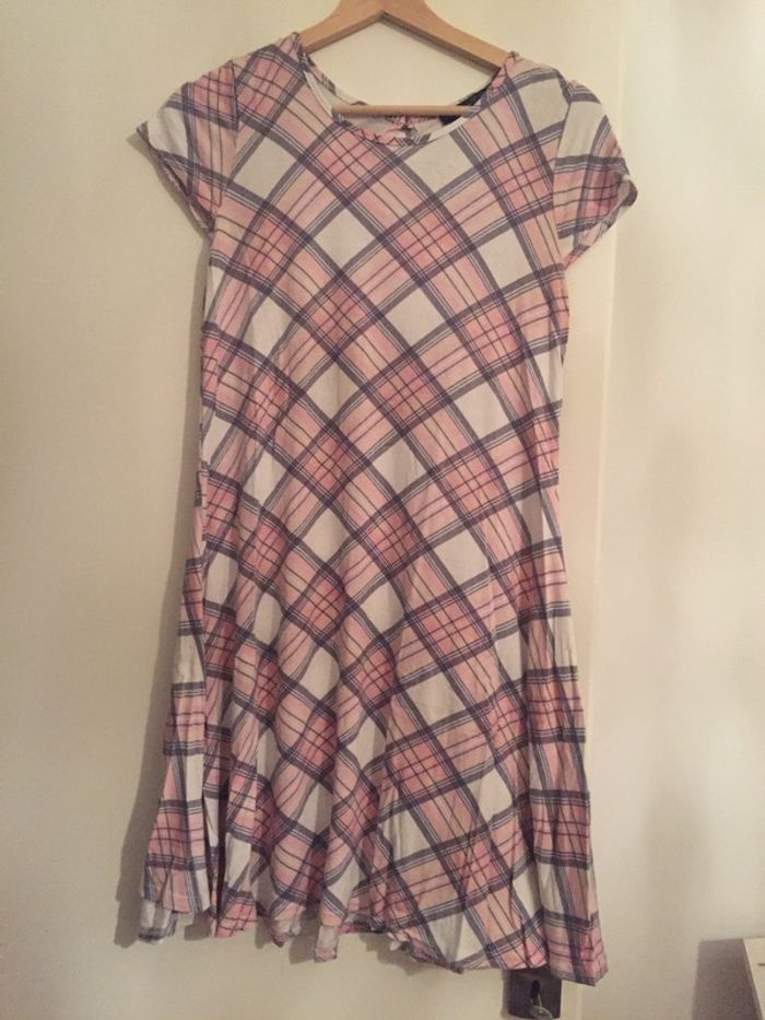 robe au tartan rose clair. excellent état. tissu synthétique. fermeture goutte d’eau dans le haut du dos. #ptite_fan36