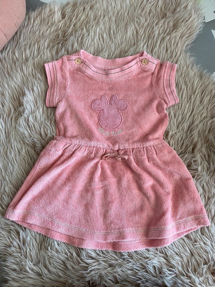 Robe en éponge Motif Minnie 2 boutons sur les épaules Ceinture élastique à la taille Très bon état Taille 6mois (67cm) #ptite_fan_bebe #ptite_fan_bebe6mois