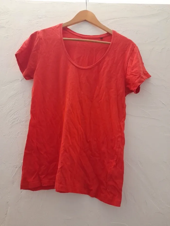 T-shirt uni porté 1 fois, couleur corail foncé