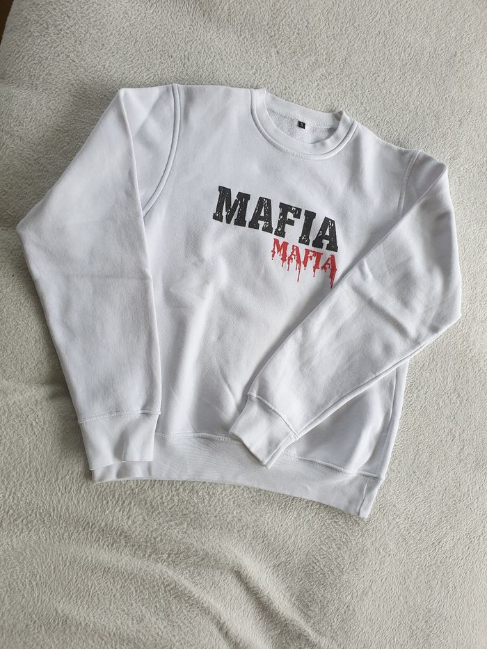 Sweat shirt blanc. Taille S. Parfait état, comme neuf. Inscription Mafia. Mixte