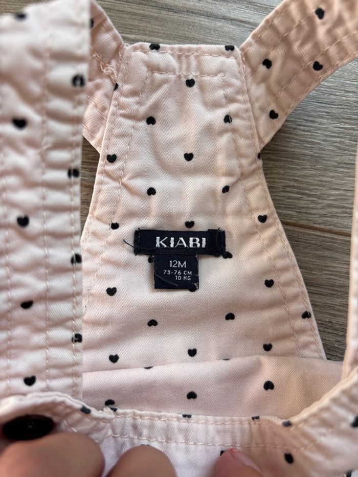 Robe salopette rose avec petits cœurs noirs en 12 mois