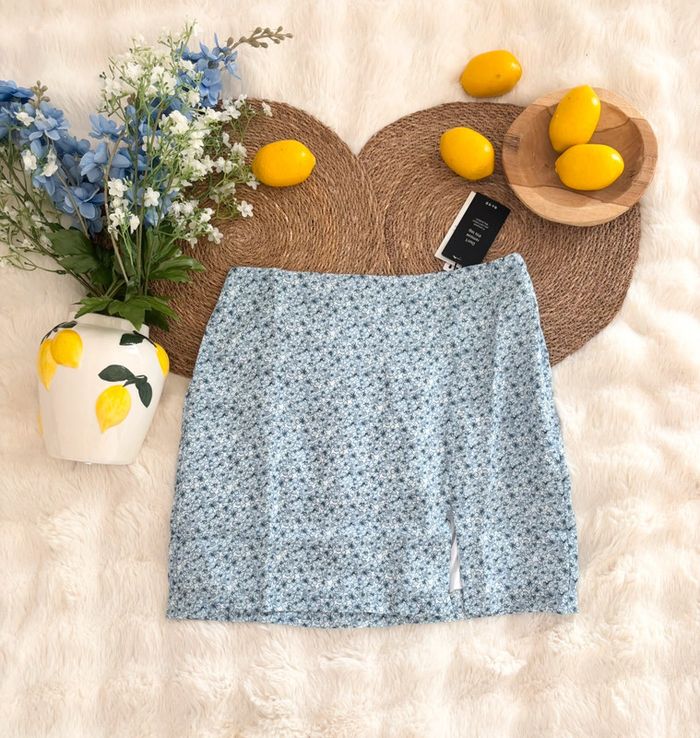 Jupe Na-Kd bleue à fleurs taille 38 EU = 40 FR