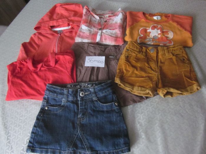 36 m, veste à capuche + chemise + 2 hauts ml + 2 jupes + short, tout simplement, orchestra, creeks, kid kanai