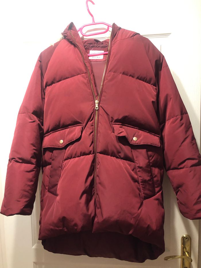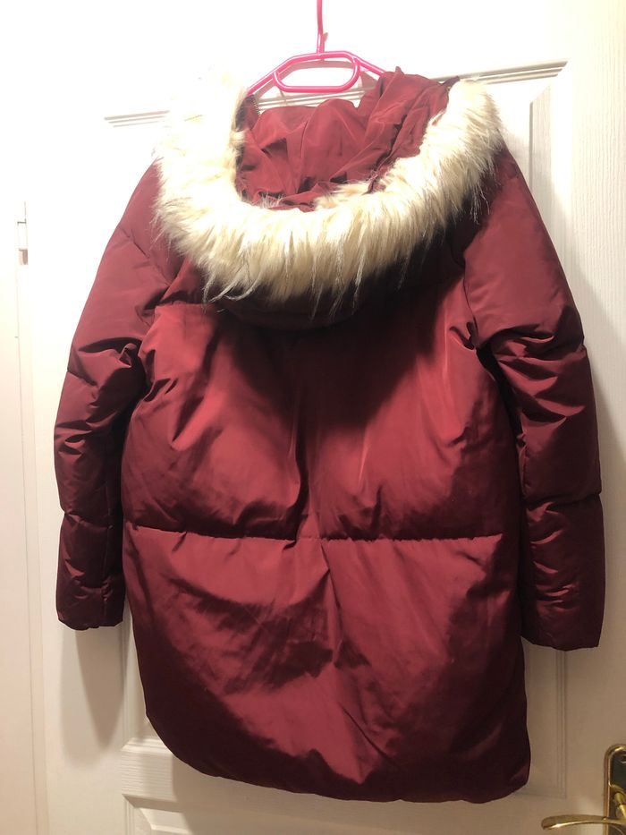 Vends doudoune chaude NEUVE Couleur Bordeaux Capuche amovible Se ferme avec fermeture éclair Taille 164 cm / 13-14