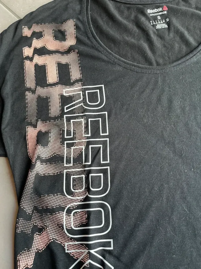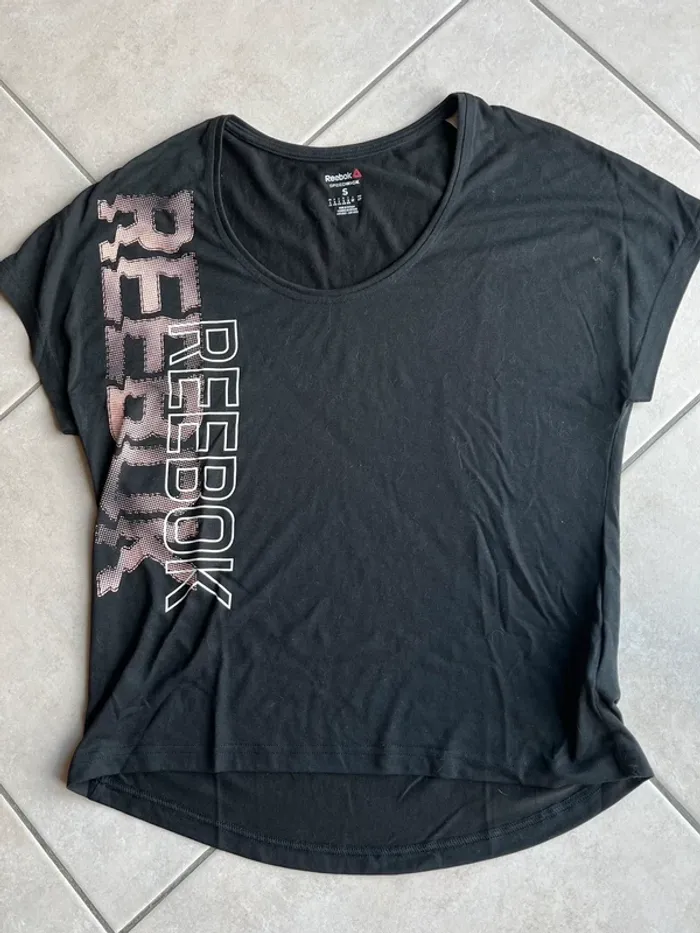 T-shirt léger avec logo sur l’avant, manches courtes larges, plus long pour le dos, excellent état.