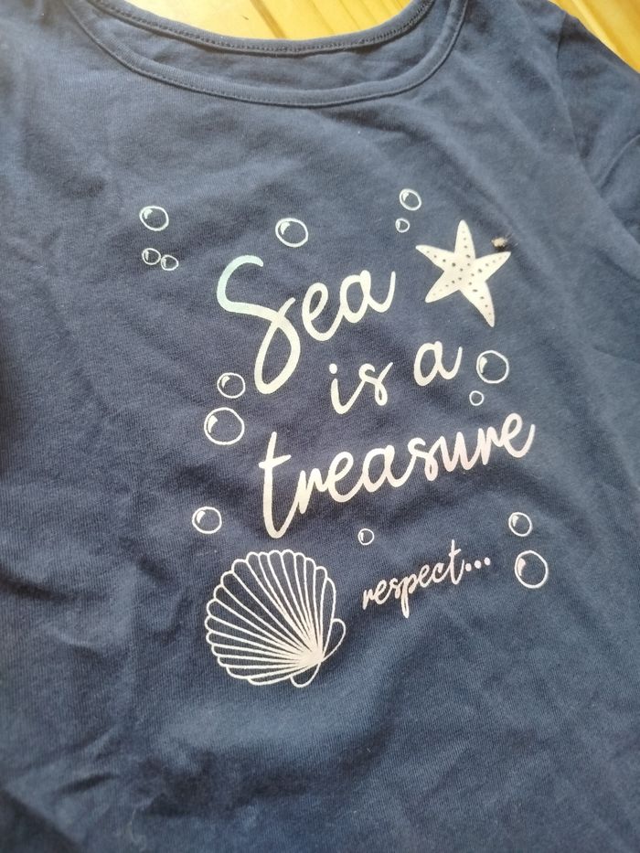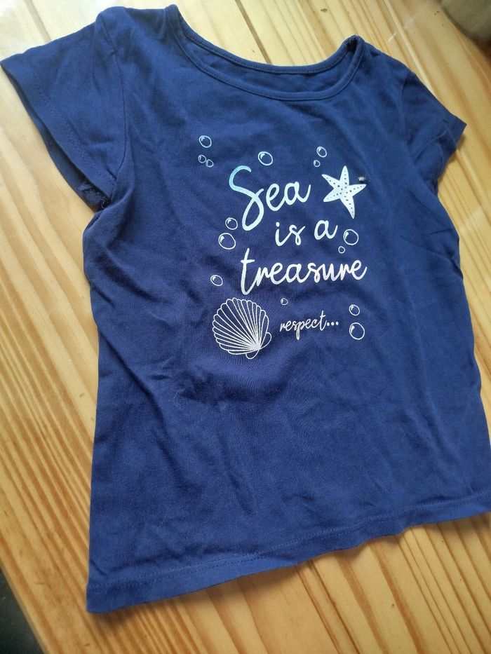Maillot manche courte bleu marine motif mer in extenso taille 4 ans