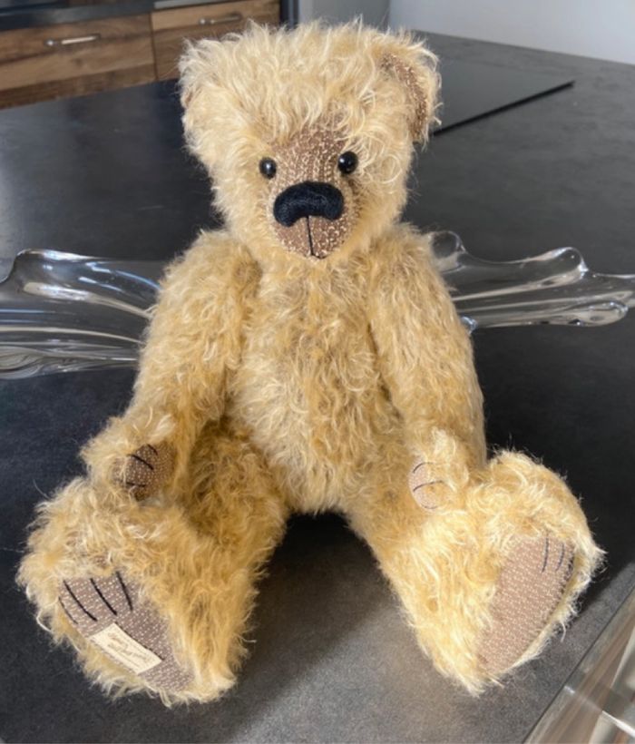 À vendre. Pierre est un magnifique ours articulé en peluche mohair doux. Il est doté d’un nez brodé à la main. Cet ours fait partie d’une édition limitée de 250 pièces. C’est le numéro 68. Taille: 40 cm (debout). Cet ours peut être offert car il est en excellent état.