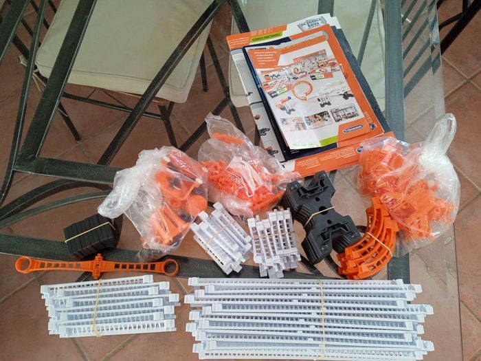 5 circuits possibles à monter soi-même. 3 billes fournies au lieu de 4, sans impact sur le jeu.
