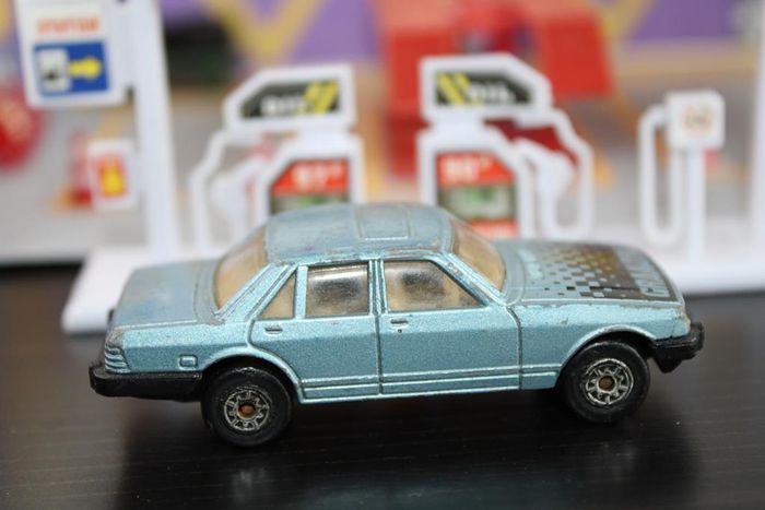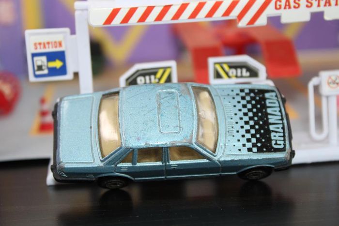 Voiture miniature ford granada Mc toy Marque : Ford Modèle : Granada 2.8 gl Échelle : Environ 1:64, 3 inches Couleur : Gris bleu, vitrage teinté Intérieur : Blanc Chassis : Plastique noir Fabricant : Mc toy. Voiture miniature en état de jeu, les axes de roues ne sont pas tordus, le vitrage est intact. Manques de peinture sur la carrosserie. Jusqu'à 15 % de remise pour achat en lot Réponds avec plaisir aux demandes d'informations complémentaires Réponse rapide envoi soigné dans les meilleurs délais