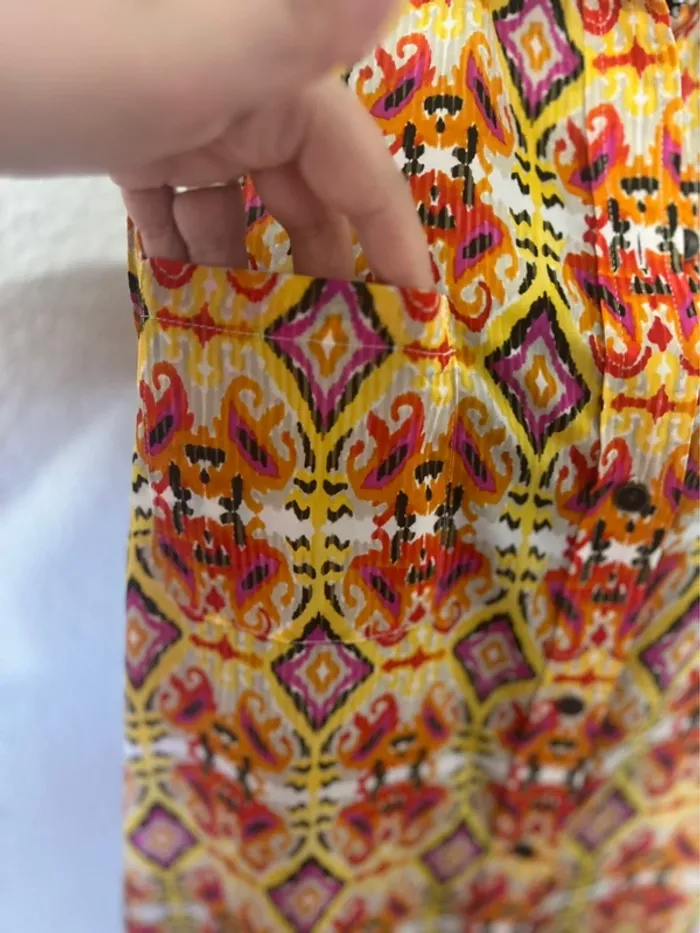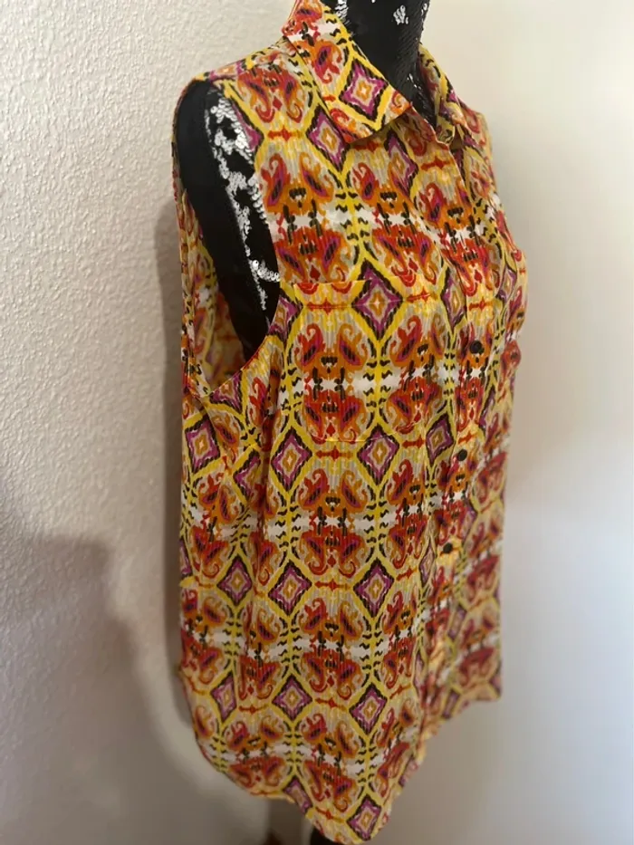 Vend chemise motif aztèque. Deux poches sur le devant, et boutons tout le long. Porté une ou deux fois. Taille XL