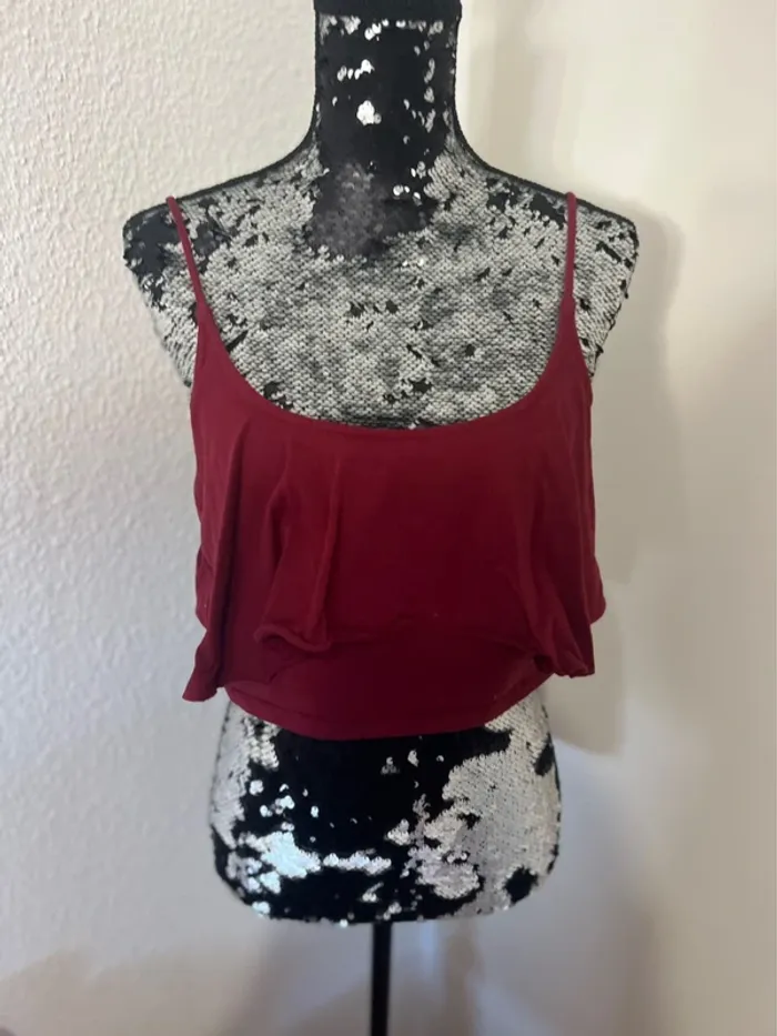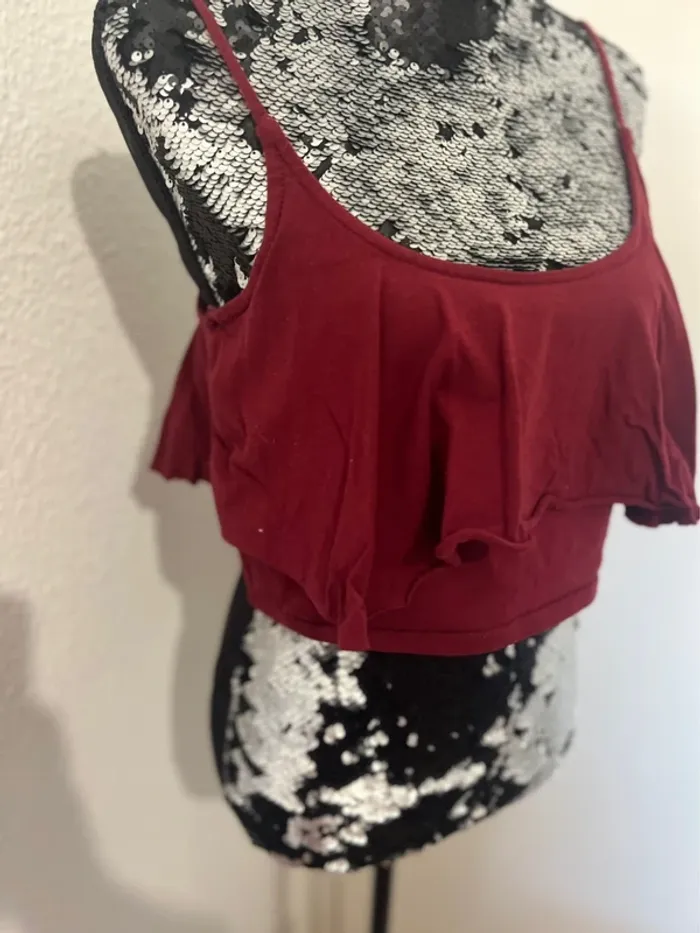 Vend débardeur court à volant. Bretelle réglable. Taille L