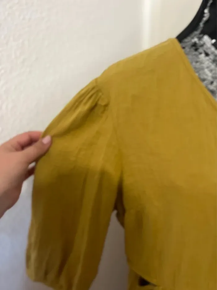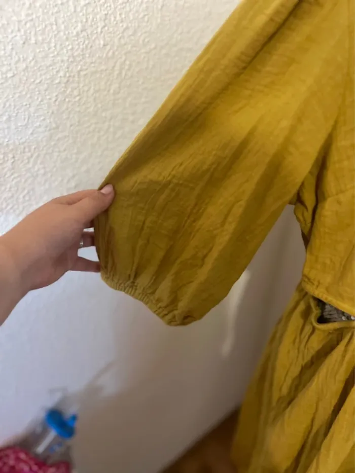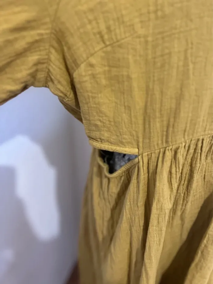 Vend robe type gaz de coton kaki. Ouvert sur les côtés, et beau décoltes. Épaule chauffe souris. Taille XL Jamais porté.