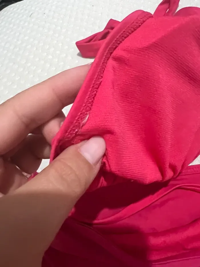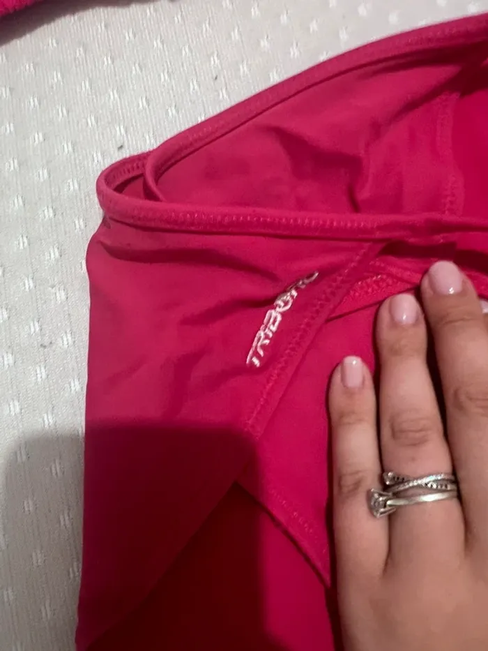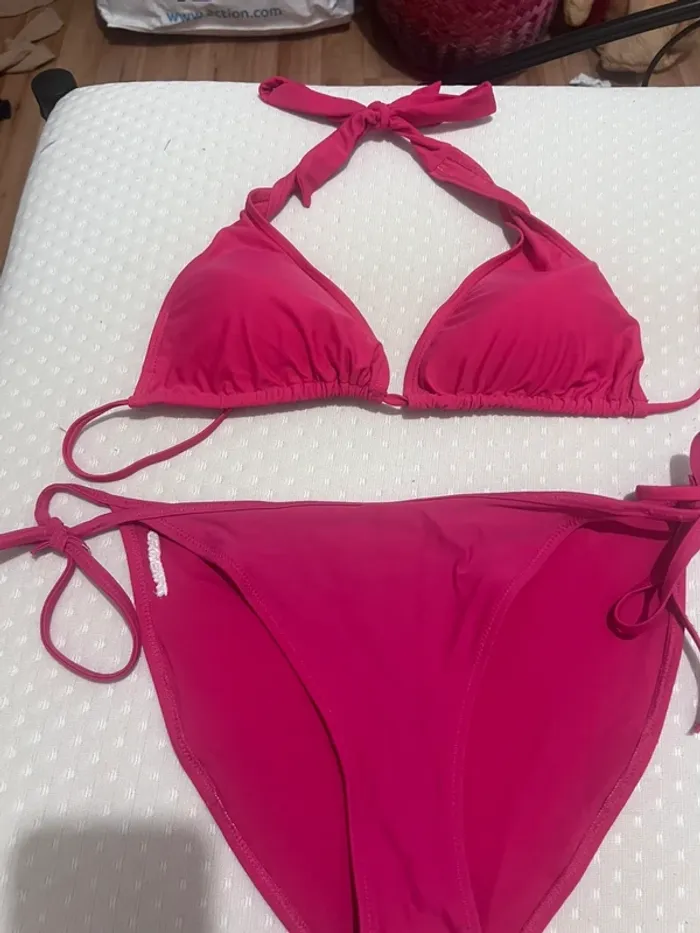 Vend maillot de bain 2 pièces. Très bon état. Se noud à la taille par deux noeud donc peut être plus ou moins serrer. Étiquette coupe mais taille XL Porté une ou deux fois