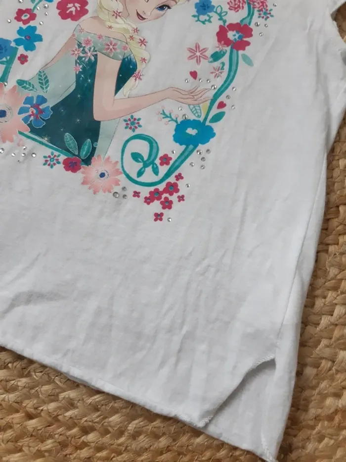 Débardeur Elsa La Reine des Neiges Motif fleurs, strass Col jauni voir photo #anthonyagnes_fille4A #anthonyagnes_fille5A