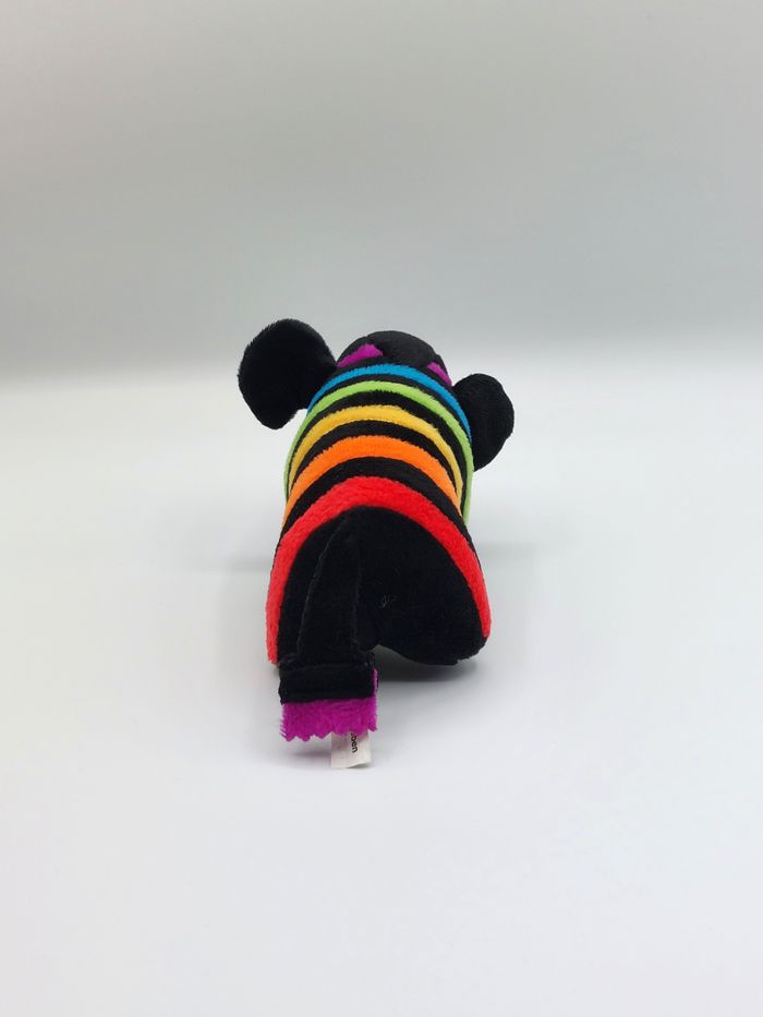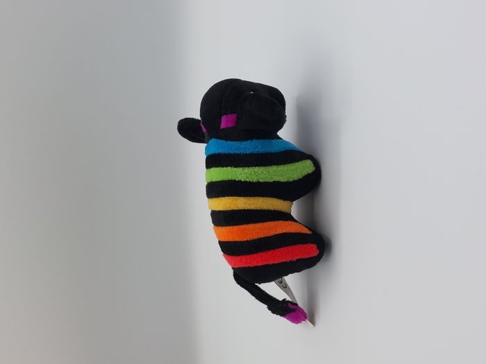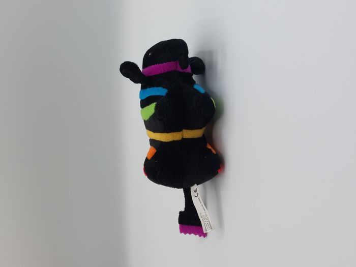 Petite peluche doudou éléphant noir rayures multicolores CAPAROL queue pinceau longueur 16 cm sans la queue - hauteur 9 cm Très bon état - lavé avant la vente Envoi rapide A11921 #caparol #peluche #elephant #doudou #plush