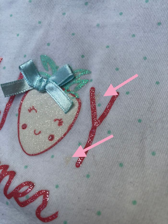Pyjama une pièce, grenouillère, dors bien Kiabi, Taille 6 mois/ 63-69 cm, Mi-saison/ été. En coton blanc avec des petits points verts, inscription « enjoy summer » en paillettes roses. Ouverture par pressions sur tout l’avant. En très bon état, sans trou. Non grisé. A noter deux taches d’origine sur l'avant. Comme il y a des paillettes dans les taches, je pense que c’est la peinture à paillettes qui a bavé au moment de l’impression du tissu. C’est discret. Cf photos. 🌸 Vous aimez cet article ? N’oubliez pas de visiter le reste de mon dressing en filtrant les tailles.