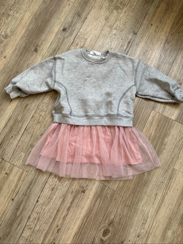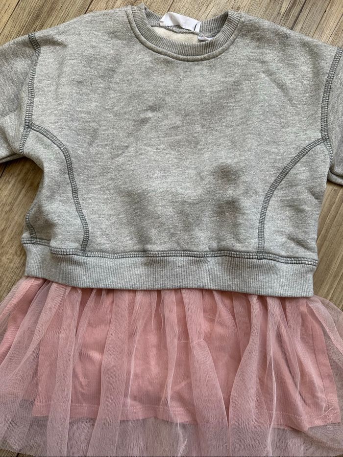 Robe pull tulle gris rose Zara 3/4 ans fille - photo numéro 1