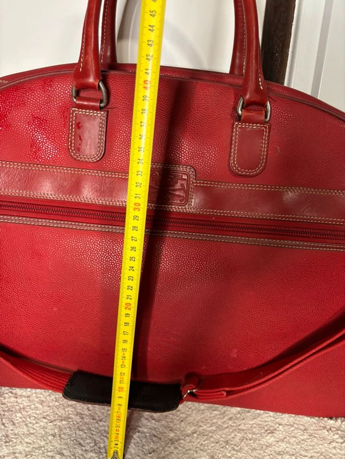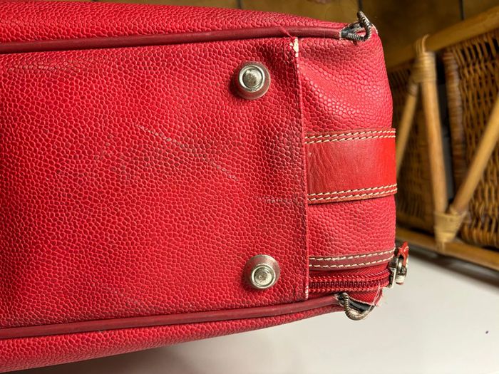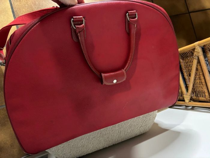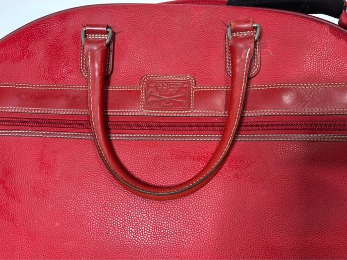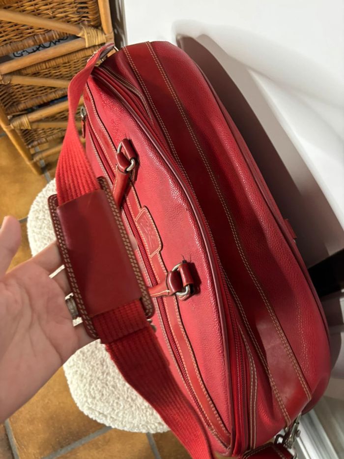 Bagage week end Sac voyage lancel rouge Model Deauville Vintage Cuir authentique Defaut sur les cotes sous le sac voir photo Je gene en rien son utilisation